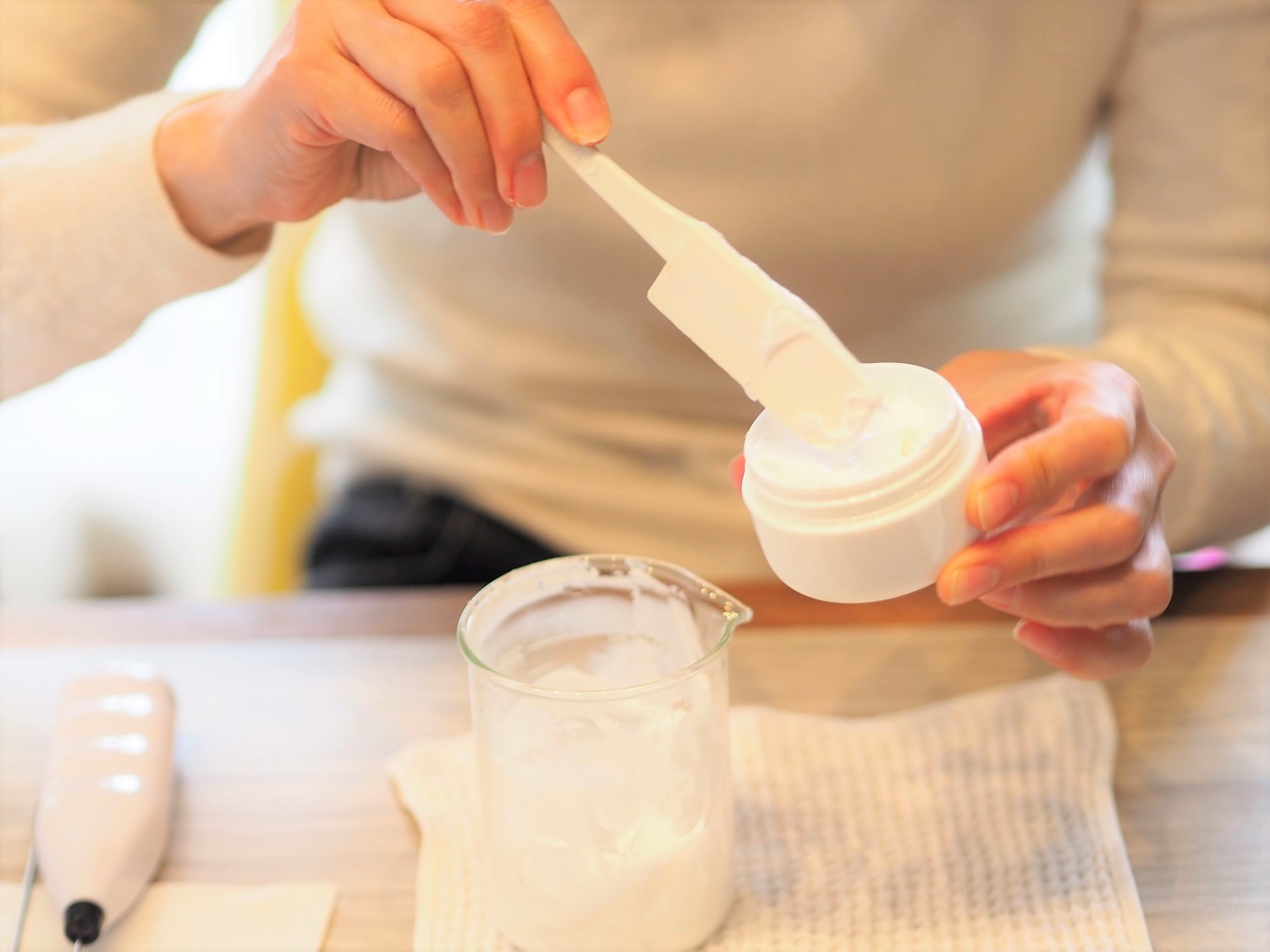 ふわふわ、もちもちのフェイシャルクリームを自分で作ることができるなんて! もしかしたら、そんな風に驚かれた方もいらっしゃるかもしれません。