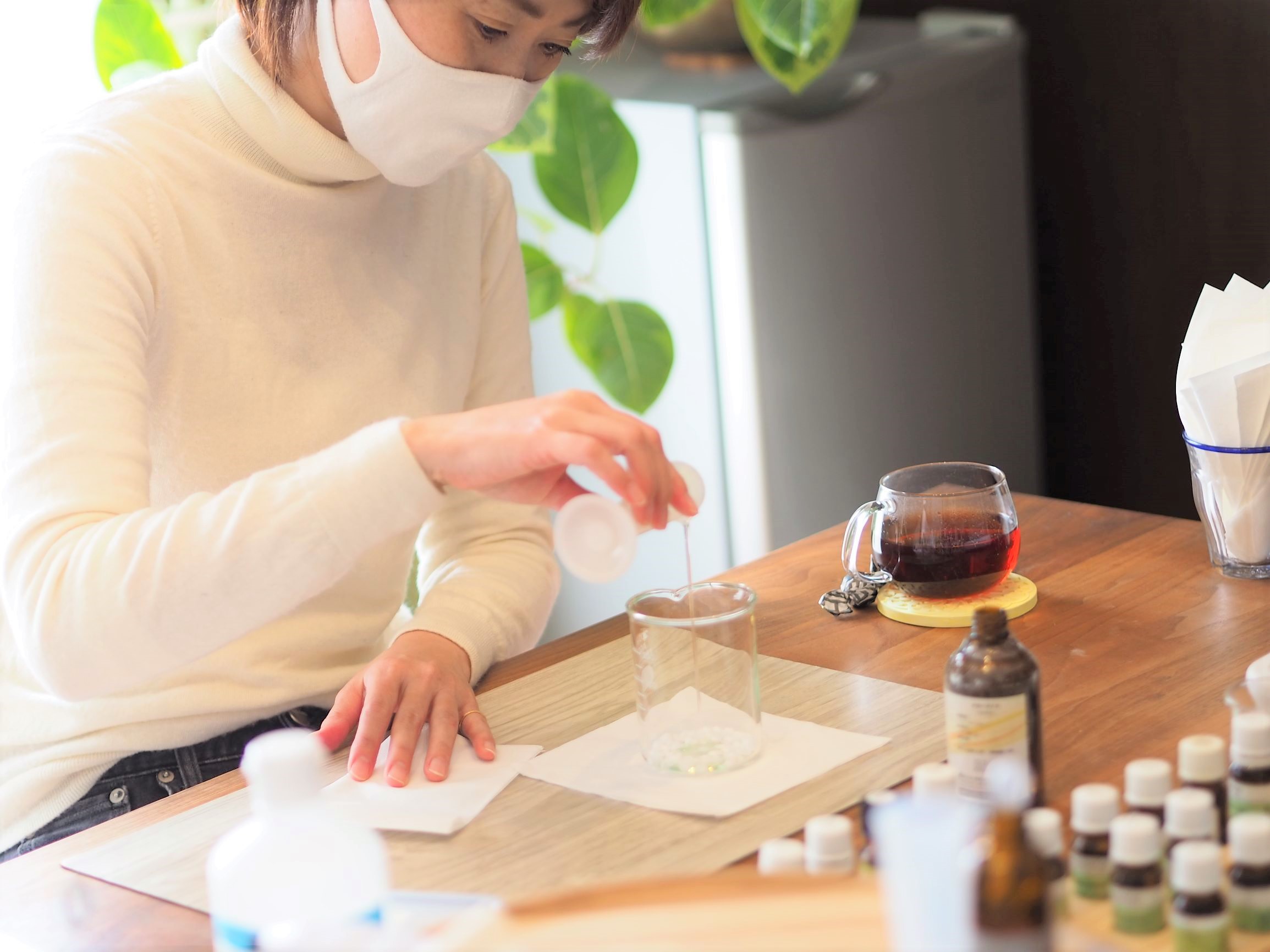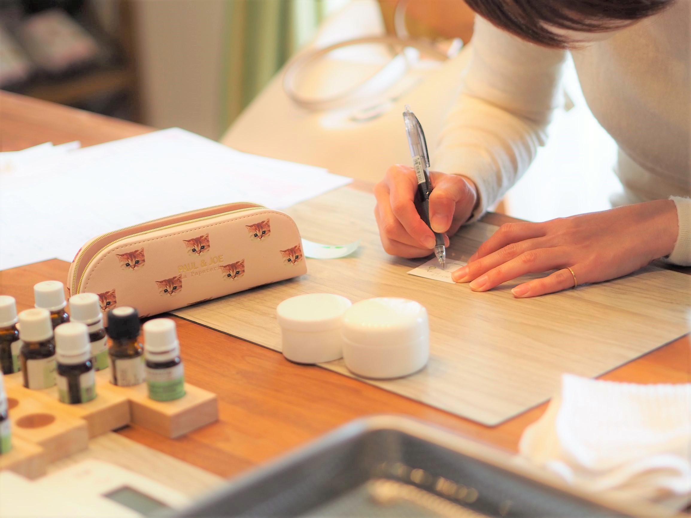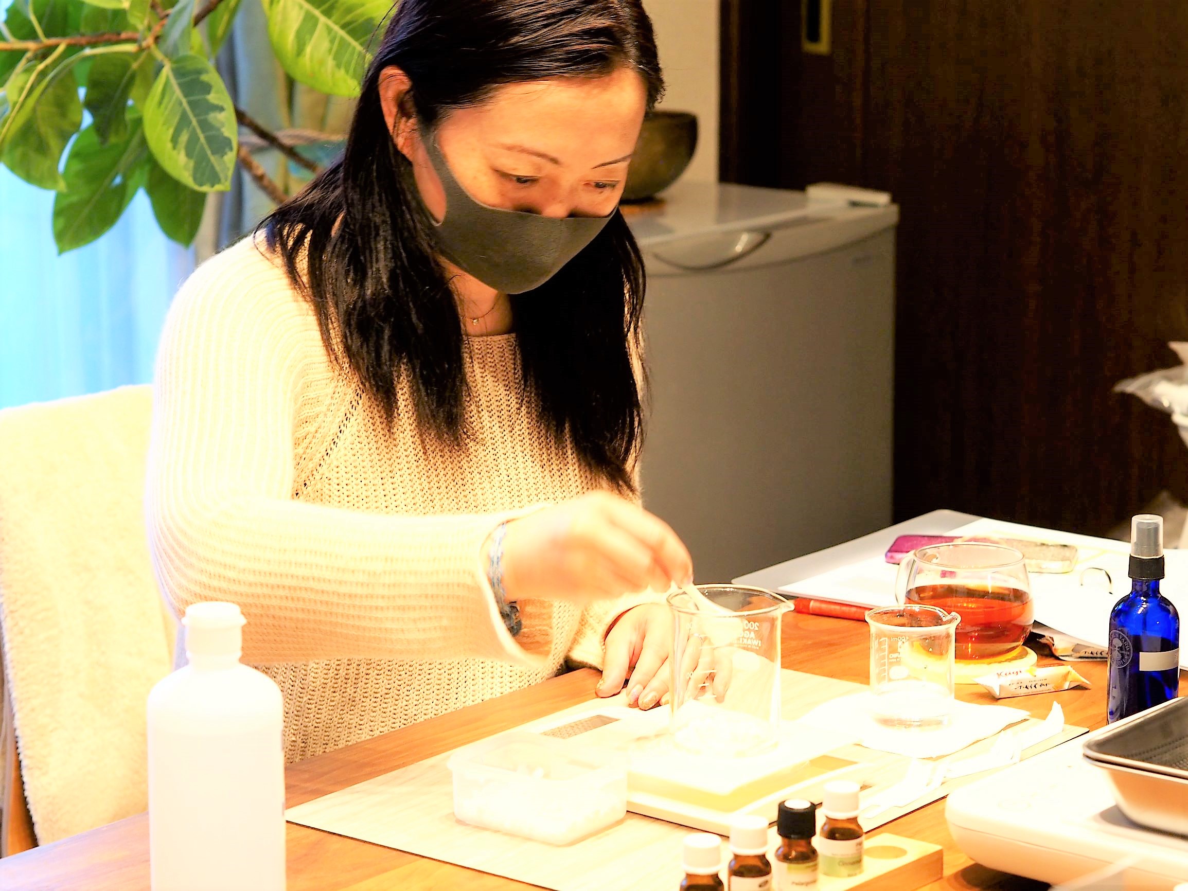 この日は新たにクリーム作りのアロマクラフトを学びにいらっしゃいました。