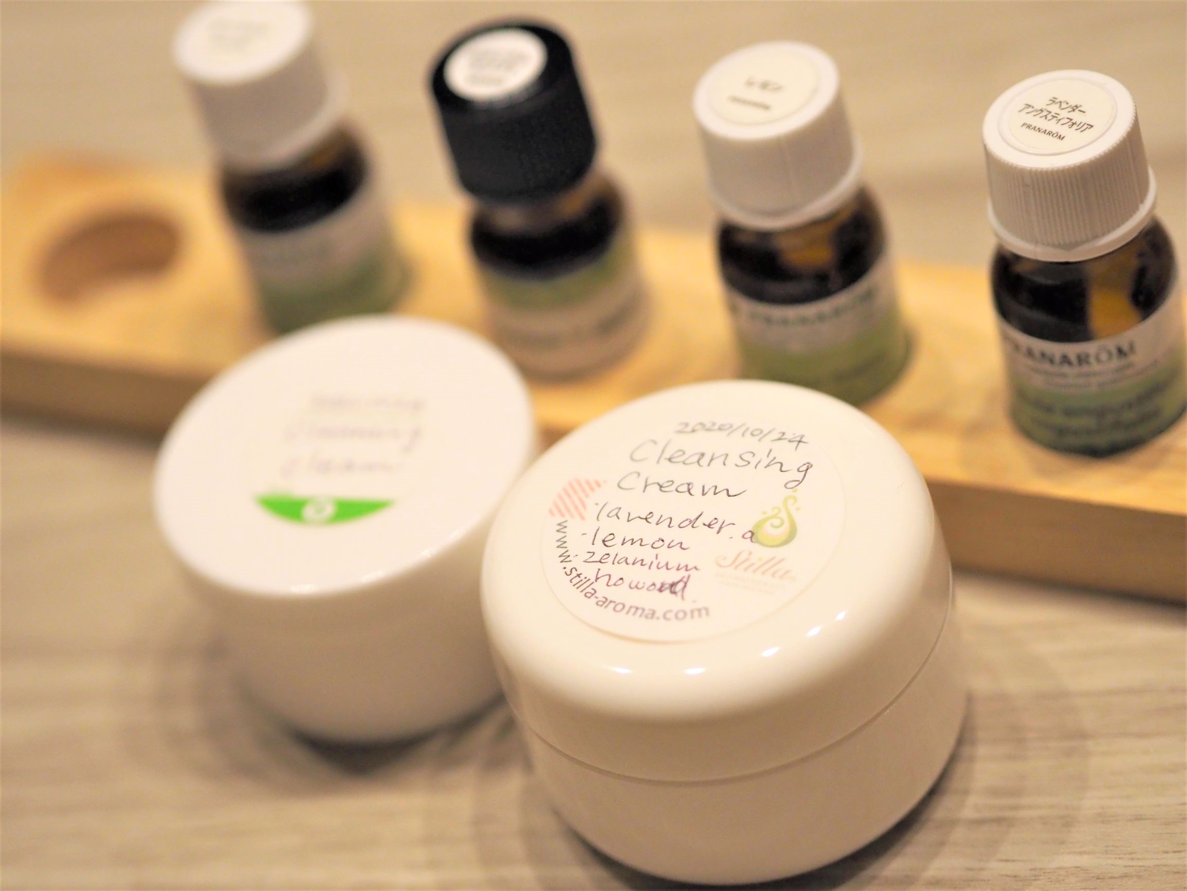 楽しくあれこれ悩みつつ精油ブレンドが決まったら、クレンジングクリーム作りの始まりです。