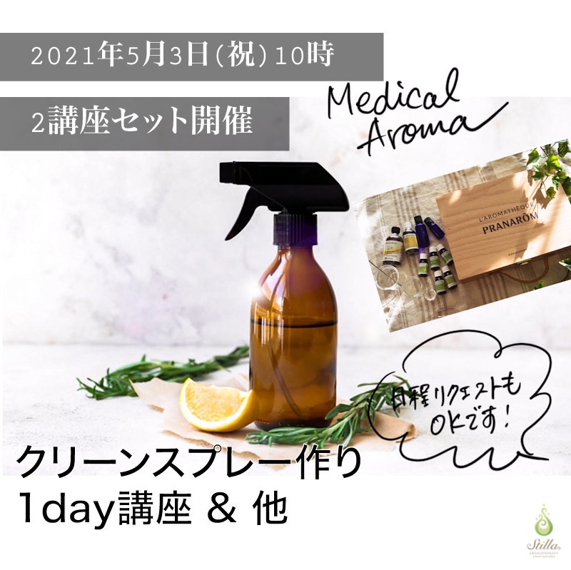 コロナ禍のお掃除にも役立つナチュラルでエコロジカルなクリーンスプレーをメディカルアロマで学び、楽しく作りましょう。